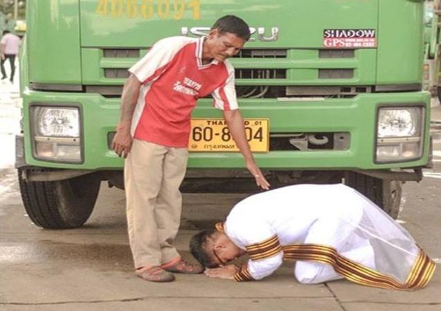 中新网10月8日电 据外媒报道,泰国一名父亲多年来靠开垃圾车赚钱养家,供儿子上学。他的儿子日前从泰国著名学府大学毕业时,在垃圾车前向父亲叩头感恩,照片在网络上广为流传。
