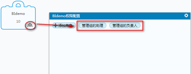 在业务包权限的配置章节里面已经给管理组负责人分配了BIdemo业务包的使用权限,这里再给管理组助理分配BIdemo业务包的使用权限,如下图。在数据源配置>权限配置管理中设置: