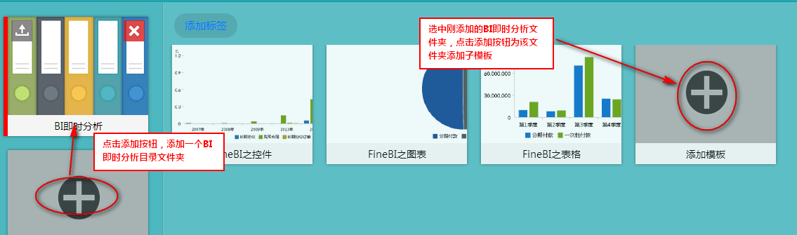 点击系统配置>报表管理,在管理目录下添加一个子文件夹BI即时分析,并将上面3个BI分析添加进去,如下图: