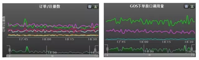 业务监控首提订单监控,对订单我们从实际订单数据和Service接口调用量两个维度去做监控,保证了监控系统的稳定和准确(监控系统也会出错的),其中下单接口调用量使用的就是Service日志数据。