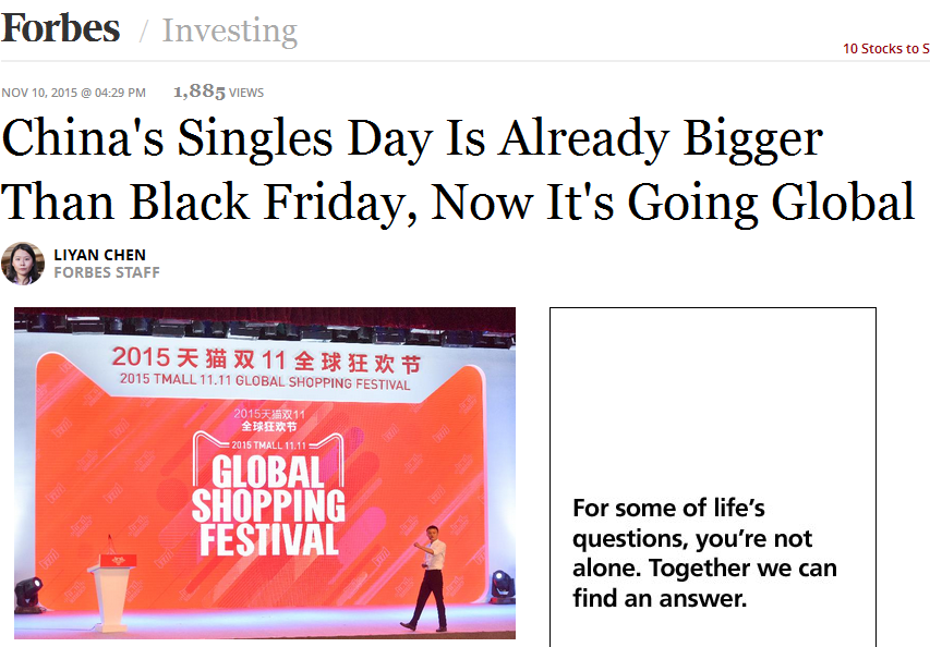 No.8 Forbes:中国的“双十一”已成为世界的购物节