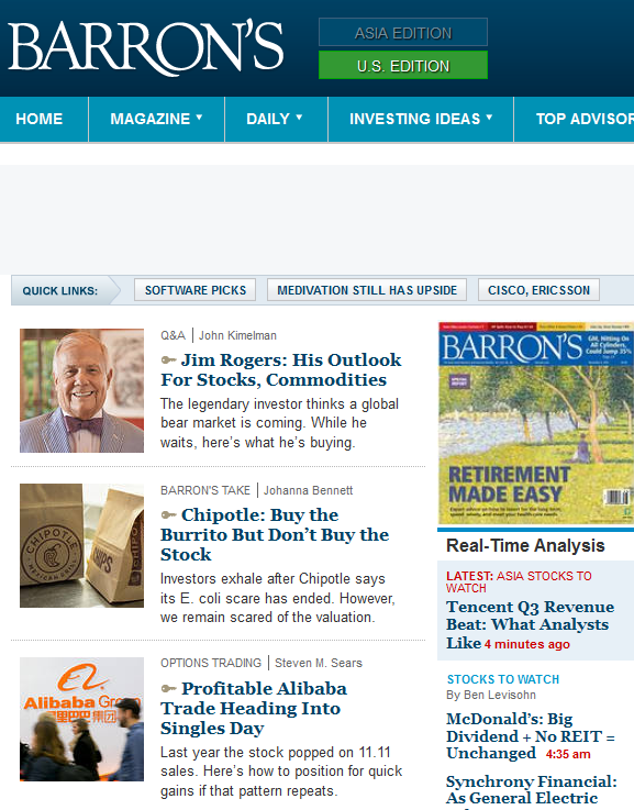 巴伦周刊首页聚焦阿里巴巴的双十一