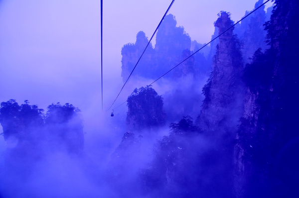 壁立的峰林,黯黑静默,一时之间,整个大地,只剩下黑白两种经典而纯粹的色彩,然而,那黑却不是黑,简简单单地,就浸染出了国画里的干、湿、浓、淡、焦的深深浅浅,山风如同大师的巨椽大笔,忽重忽轻从大地上扫过,清冷的寒气涤荡着人的每个毛孔。