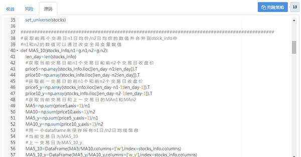 完整代码请去 https://www.joinquant.com/post/228 克隆策略进行深入研究。