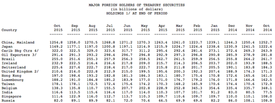 下图为主要国家持有美债情况: