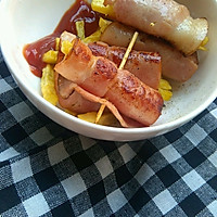5. 最后,将培根卷薯条,放一丢丢油,进锅煎制金黄,撒少许黑胡椒就OK啦。|
