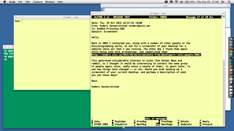 Bram在2015年仍然依赖xterm来使用Vim、Zimbu和邮件。但是,其屏幕大小已经发生了很大变化,可以同时显示更多的内容。