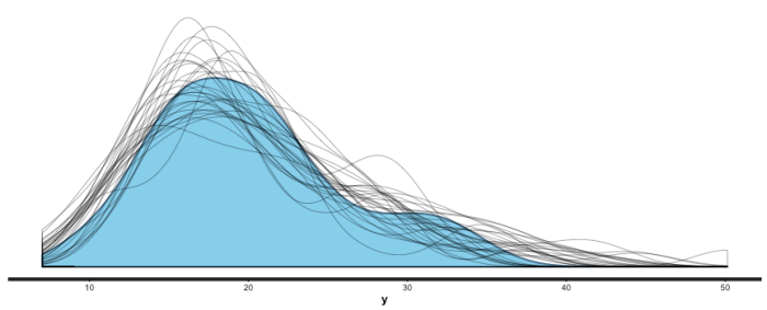 Third, as its excellent vignettes emphasize, Bayesian modeling is a series of steps that include posterior checks, and rstanarm provides a couple of functions to help you, including pp_check. (This difference is not as hard-wired as the first two, and brmscould/should someday include similar functions, but it’s a statement that’s consistent with the Stan team’s emphasis.)