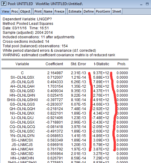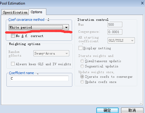 [软件] 面板数据采用变系数模型,用eviews估计时在options中选取了White Period选项,结果行 |