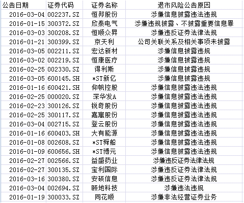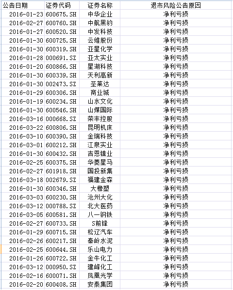 可能退市股一览: