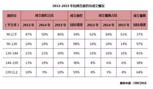 值得关注的是,刚需增速低于改善增速,政策放开后,置换需求快速释放且潜力较长久。90-120平方米的住宅产品成交增速最快,在外界利好下,杭州的改善性需求不断释放,2016年楼市的新看点将集中在改善需求点上。