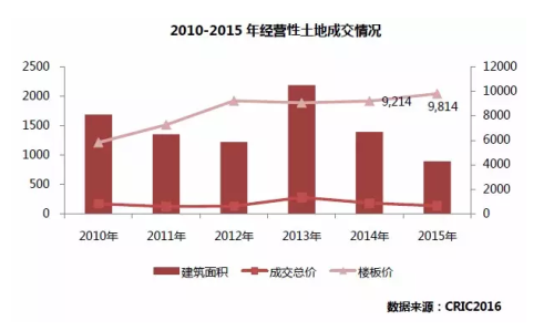2015年杭州共成交土地建筑面积891万平方米,同比大幅下跌36%,其中住宅用地占比51.6%;成交楼板价为9814元/平方米,同比增长6.5%;成交金额642亿元,同比下跌26%。