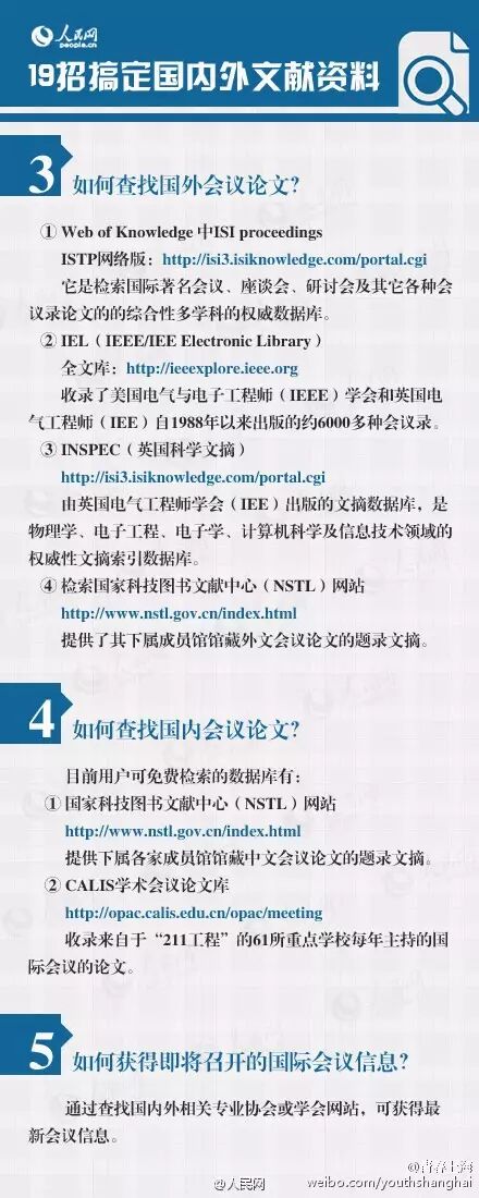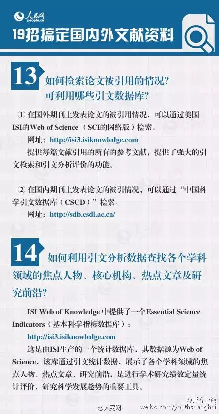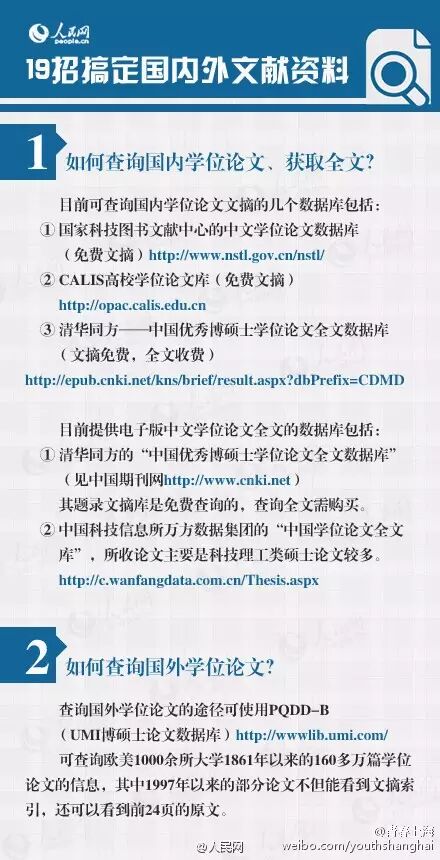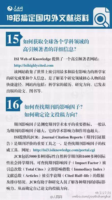 毕业论文,学期论文,课题论文……还在为找文献资料抓狂吗?别着急!这里搜刮国内外文献:学位论文、会议论文、专利文献、科技报告……通通到碗里来!高引频著者、研究前沿、论文被引用情况、期刊影响因子……各个击破!超实用!学生党快转发收藏!