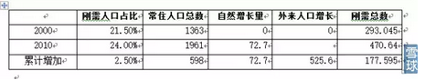 用“累计新增外来人口刚需数量”/“累计外来人口增长”=225.3/525.6=42.9%,这个数字的含义是:每100个外来人口中,有42.9个是刚需人群,也就是说从2000年~2010年的十年间,20~29岁的刚需占外来人口比例为42.9%,暂时可称之为“新增外来人口刚需占比”。