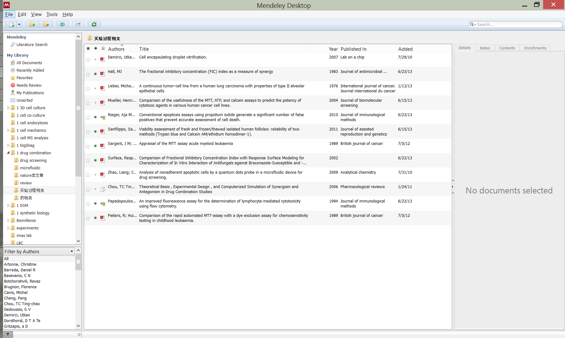 之后随着时间的流逝,一个文件夹下的文献慢慢变多,这个时候就需要在Mendeley中建立子文件夹了(对于我来说,每个项目中前前后后需要阅读的文献大概在300篇左右),也就是传统意义上的整理。但是我不赞成把文献归类做的过细。对一个项目下简单分类,使每个子文件夹中的文献大概不超过50篇,再通过发表年份,期刊名,作者名等信息,也可以很容易找到所需的文章了。