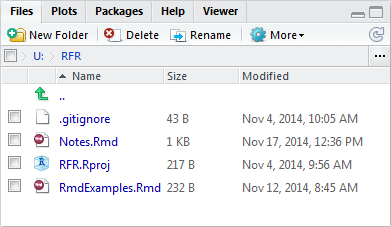 - Confirm that RFR (the name of your project) is displayed in the upper left corner of the RStudio window.