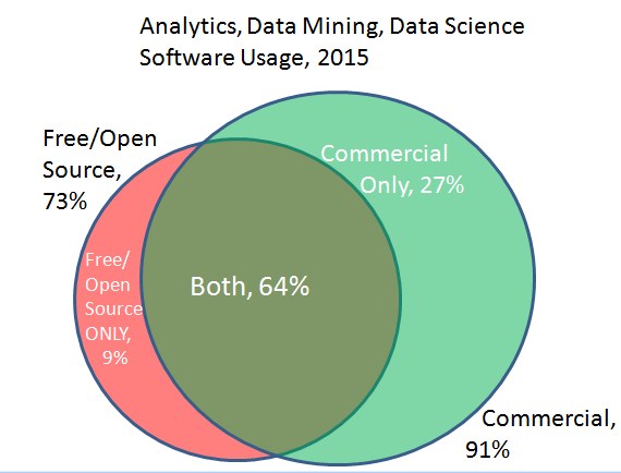 - RapidMiner, 31.5% ( 44.2% in 2014)