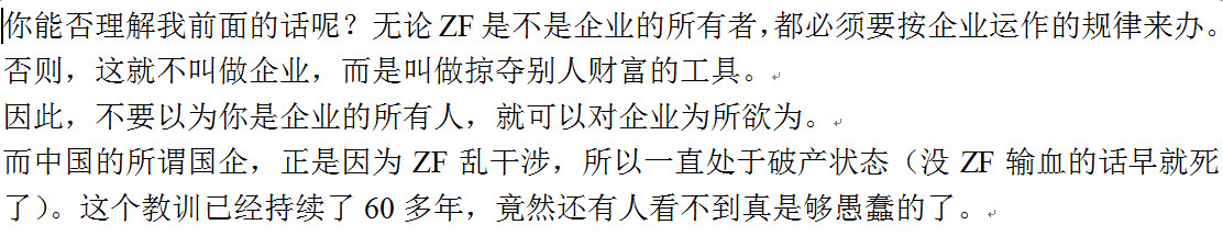 如果我是政府,我经营我所有的企业一如一个败家子经营其父亲留给他的企业到破产一样,爱怎么搞怎么搞,你管得着吗?任何他人都无权过问和指责。