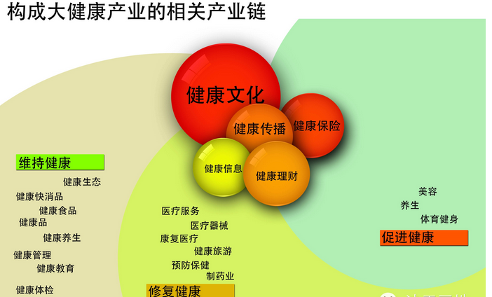 传统观念认为,医院、医疗、药品、医疗器械就是健康产业,实际上这些只是些防病治病的医药产业。按世界卫生组织发布的健康决定因素,医疗服务对健康的贡献率大约为8%。