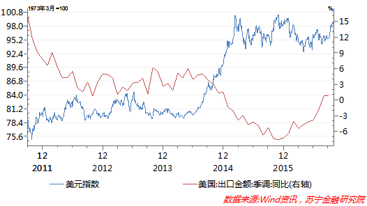 第四,高利率必然带来强势美元,从而削弱美国出口竞争力。出口也是特朗普刺激经济强劲增长的重要部门,高利率政策必然导致美元大幅升值,而美元的大幅升值显然不利于美国出口的增长。2014年下半年以来,美元指数从80上升到98,升值幅度超过20%。美元大幅升值对美国出口已经形成较大的冲击——自2015年以来,美国连续20个月出口负增长,直至今年8月转正。而这正是得益于今年上半年美元指数回落5%后对下半年美国出口促进作用的结果。