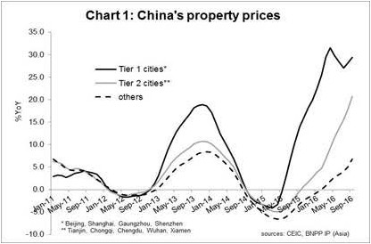 去年中国发布房地产市场刺激措施时肯定不希望看到如今二分化的市场。在结构改革过程中,中国一些地区受到了严重打击,中国去年实施的房地产市场刺激措施正是为了减少这些地区居高不下的房地产库存。但是限于困境之中的省份房地产库存仍保持居高不下,比如辽宁,山西,陕西和宁夏,而那些市场繁荣的城市库存出现了进一步下降,给房地产价格带来了上行的压力。