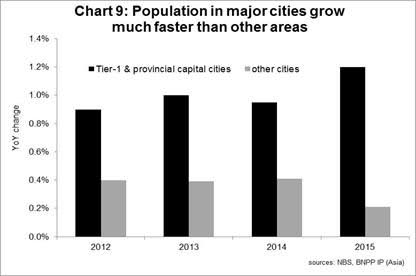 房地产市场价格的分化行为同样反应了不同城市经济基础面上的分歧。与其它城市比起来,主要城市的人口增长很强劲(图9)。在这些人口稠密的主要城市,住房供应不能满足需求,房地产价格出现上涨,这是很自然的。在房地产价格和抵押贷款飙升的背后并不全是投机。