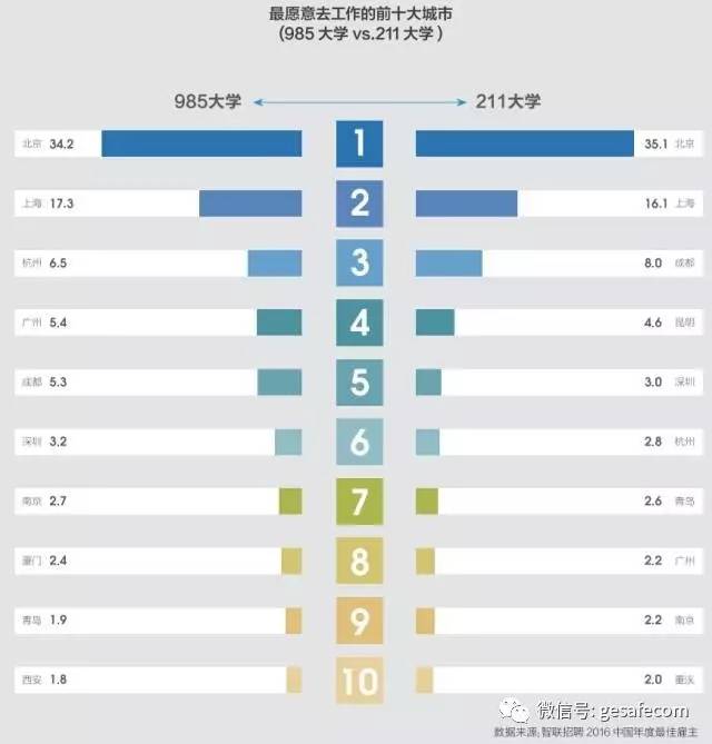 在这一过程中,最大的赢家除了京沪之外,房价理性增长的新一线城市也可能是受益者。智联招聘《2016中国年度最佳雇主年度总报告》显示,最受985大学学生欢迎的五大城市,除了北上广之外,还有杭州和成都这两个新一线城市,相比起“四小龙”,杭州和成都的房价涨幅相对温和,但同时又都有自己的特色产业(杭州有**,成都有电子信息产业)和相对可观的收入水平。