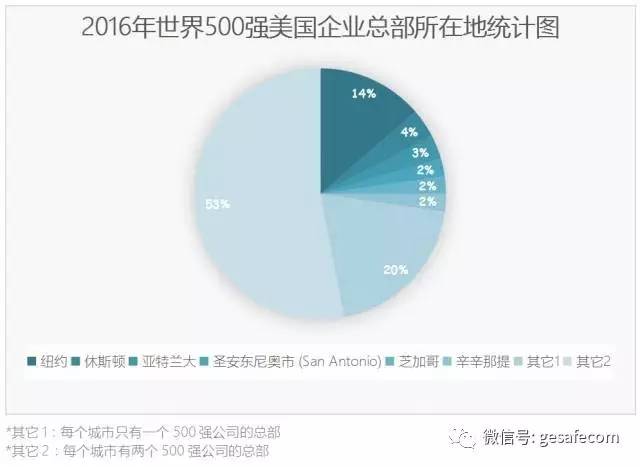 可以看到,世界500强美国企业总部分布在多个地方,不像在中国,基本上集中在京沪。