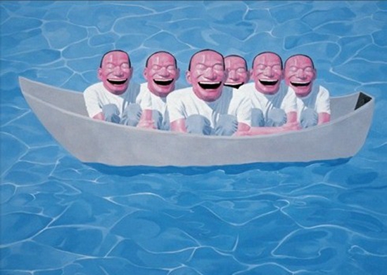 “岳敏君的作品,主角都是像被抽掉了脊梁骨的人,抽巴的人生,凝缩在抽巴的身体中。很多人反感他的画,但你走在大街上,满眼望去都是这样的图景。中国人的集体心理年龄没超过6个月。”武志红言之凿凿。