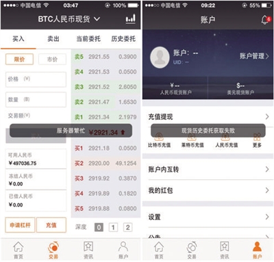 记者从比特币投资群里了解到,在年前火爆行情中,在交易过程中遭遇APP以及网页卡顿的投资者并不在少数。