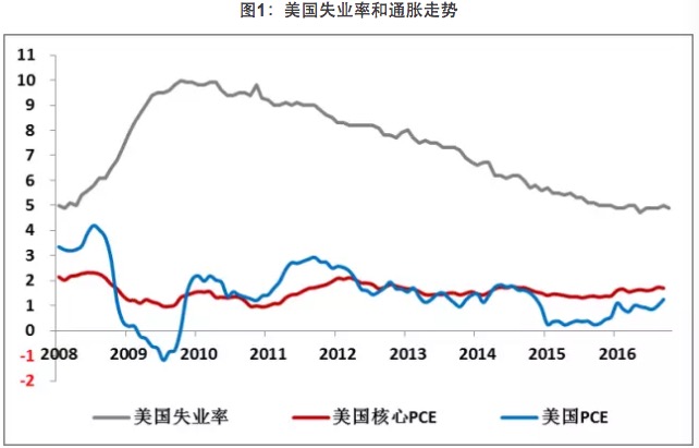 “今年以来失业率一直低于5%的目标值,但通胀至今还未实现2%的目标。因此,通胀就是决定未来美联储货币走向的关键因素,”建设银行金融市场部研究处处长张涛告诉第一财经记者,按照某机构估算,特朗普的5500亿美元投资计划所带来的新增粗钢、精炼铜需求,大约相当于2015年全球粗钢和精炼铜需求的0.4%和0.2%,在全球钢铁和有色总体过剩严重的背景下,如此有限的需求应该无法对价格产生明显影响。但从美国失业率和核心通胀间明显的反向关系来看,特朗普的5500亿美元投资计划必定会产生数量可观的就业岗位,进一步降低失业率,进而推升美国核心通胀率。