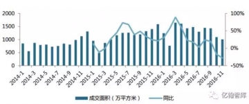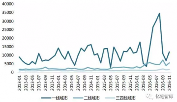 表:2014年1月-2016年11月一线及核心二线城市商品住宅成交量