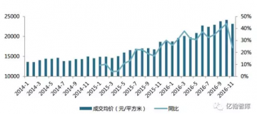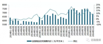 表:2014年1月-2016年11月一线及核心二线城市商品住宅成交均价