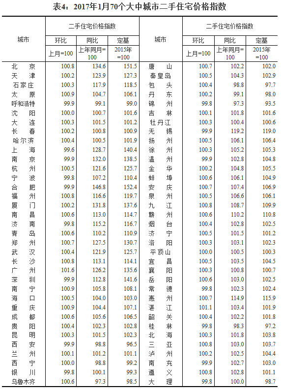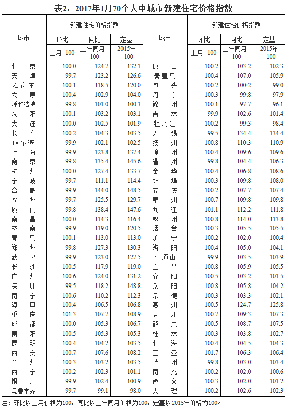 [国家统计局]2017年1月份70个大中城市住宅销售价格变动情况- [城 市]:全国