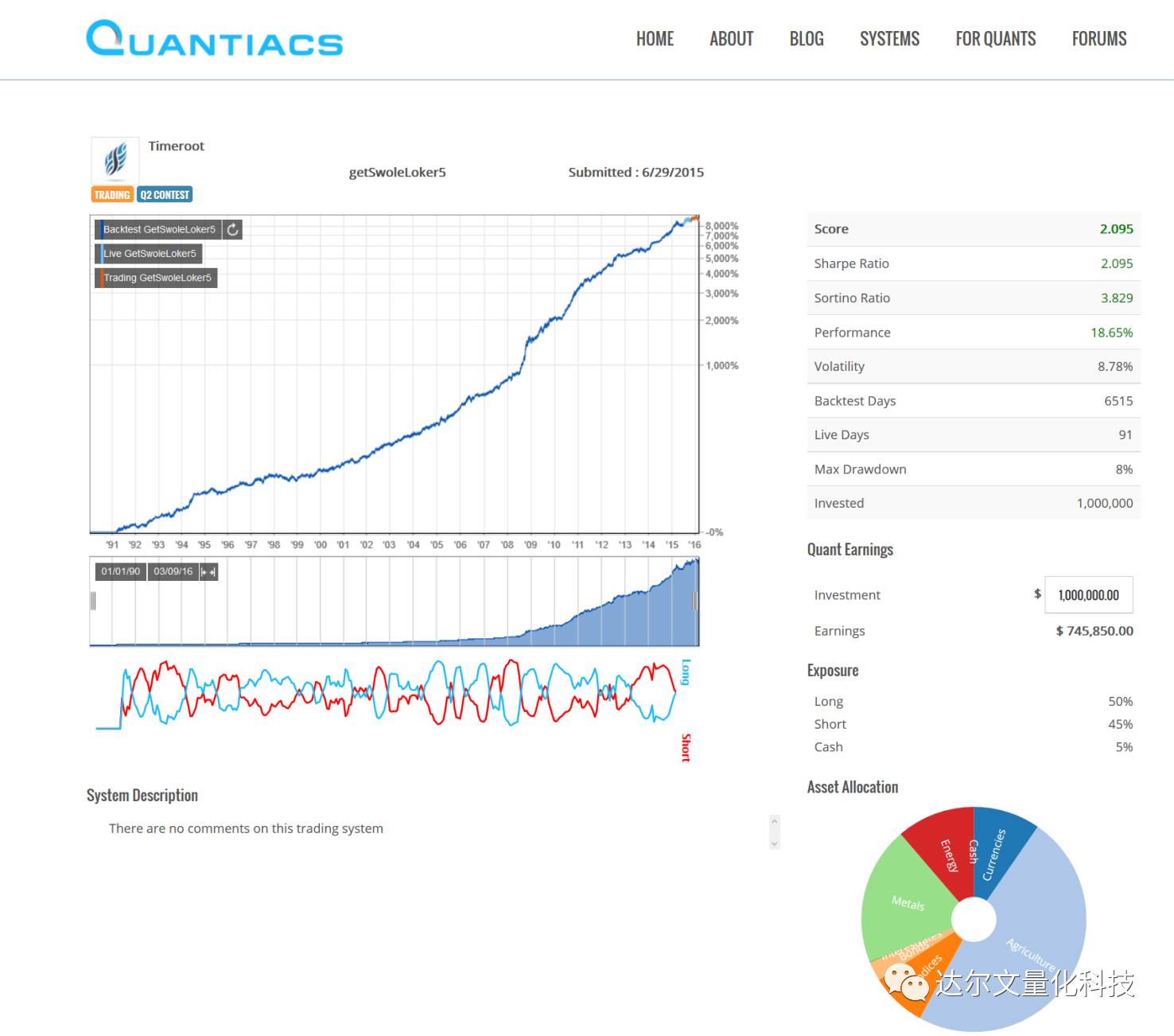 “我们看到很多不同的风格和技术”,Froehler说。“开发者开发算法; 一旦他们对他们的算法感到满意,他们提交到我们的平台,我们运行完整的回测试,并测试它在真实市场数据的表现。我们给广大开发者提供了进入一个封闭行业的机会。这些量化开发者为Quantiacs提供了使用他们算法核策略的非独占许可,而个人保留他们已经开发的知识产权(IP)的完全所有权。