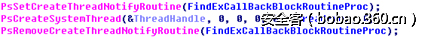 通过设置线程创建回调,并主动触发回调来找到“ExCallBackBlockRoutineProc”函数地址。