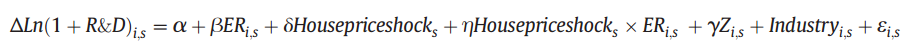 二是考虑工作环境质量好的公司更能获得员工的信任,从而提高公司克服不确定性和失败风险的能力,因此认为这样的公司在经济危机期间更可能保持对投资研发项目的投入。作者用美国各州的房价的下跌幅度来表示各州受危机的影响程度,使用下式模型进行检验: