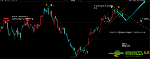 笔者程华志认为,特朗普的再通胀交易有很多不确定性,上周推翻奥巴马医保案的努力失败,欧洲与法国选举的不确定性,以及英国脱欧谈判的开启,这些情况对黄金都是有利的,因此黄金的下跌被视为购买机会。上个交易日,英国首相特蕾莎.梅提交正式的脱欧文件,引发了将长达数年的脱欧谈判,这是对欧洲凝聚力的考验。芝加哥联储主席查尔斯·埃文斯周三表示,他支持今年一次或两次以上的加息。美元的再次反弹,以及股市的上涨在一定程度上抑制了黄金的上涨动能,美元的走强使得以美元计价的黄金对其他货币持有者而言更盎贵,需求下降。另外,从技术面看,由于金价在200日均线处未能有效突破,金价在短期内也有触顶的可能。但由于目前国际局势不稳,诸多的不确定性对黄金仍是支撑,因此黄金若回调,下跌的幅度也不会太多。今天将有美国当周初请失业金,美国第四季度GDP及核心通胀数据等发布,黄金走势将会有所波动。