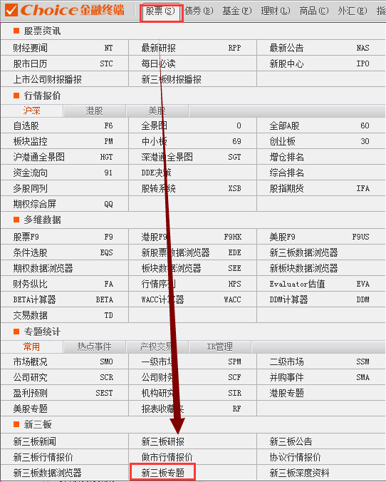 1.点击股票-新三板专题