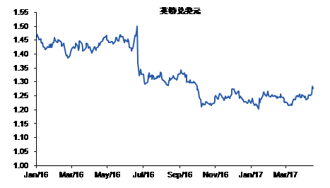 如今,英欧双方在脱欧“分手费”、处于英国的欧盟公民与欧盟的英国公民身份合法性、英国与欧盟脱欧后在贸易、监管、劳动力地位等诸多方面存在很大的谈判空间与不确定性,即便有两年的谈判时间,要在上述焦点问题上达成完整协议也实属不易。但笔者认为,即便届时不能达成,预计也会有一些过渡安排,而不会出现脱欧悬崖。市场对于未来英国脱欧谈判的积极预期,已在英国宣布大选当日英镑大涨中可以看得很清楚。英镑占美元指数权重11.9%,英镑反弹,支持美元走弱。