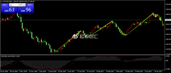 从日K线图上显示黄金现货价格如预期开始步入下行趋势整理回落价格形态指引标准。从技术指标上看MACD动能缩量在持续。回落趋势依然持续。