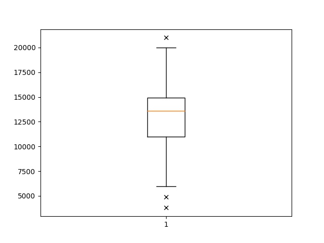 import matplotlib.pyplot as plt plt.boxplot(price, 0, 'x') plt.show()Here it is the plot:
