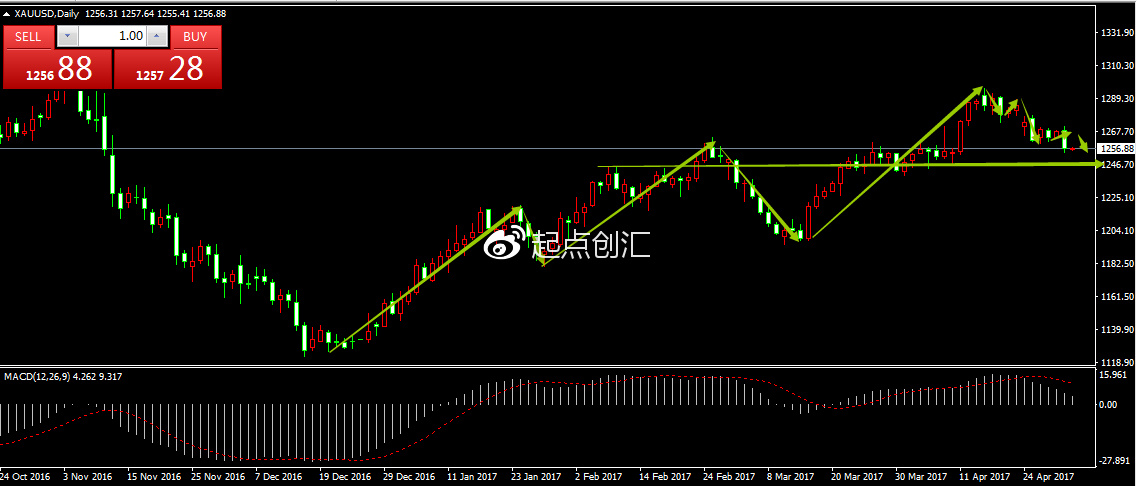 2017-5-2四小时黄金现货走势