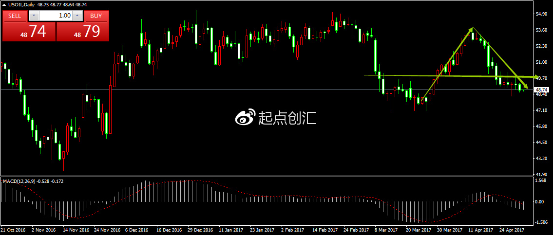 从日K线图上显示美原油价格前期经历了过山车的反转以后近期趋于宽幅整理有进一步承压的迹象从技术指标上看MACD下行的动能在持续放量。空头之势在延续。