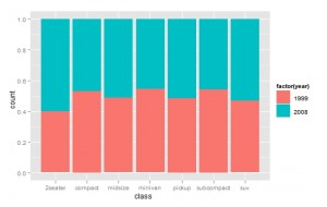 p <- ggplot(data=mpg,aes(x=class,fill=factor(year)))