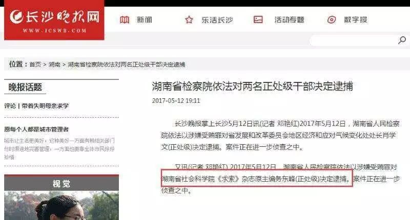[学术治理与讨论] 大型综合性学术理论期刊《求索》杂志原主编乌东峰被湖南省检察院依法逮捕 |