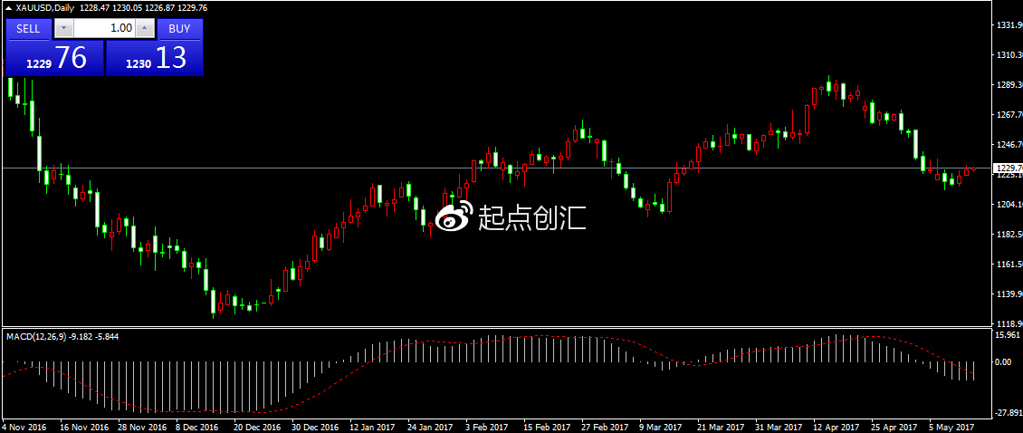 从日K线图上显示黄金现货如我们所料价格开始小幅企稳短期多头反弹从技术指标上看MACD下行的动能依然在持续释放这也遏制了短期的涨幅价格趋于整理偏多。