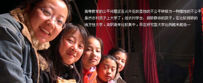 但是大家还是有一个感觉,温总理也提到,为什么大学里农村学生越来越少了?其实是重点大学的农村学生越来越少,这个现象非常明显。我们在一些学校有调查,清华、北大来自农村的学生,2000年前后是18%左右,一直是低于20%的;中国农业大学也是“985”高校,原来农村学生比例达到40%左右,最近这几年已经降到30%以下,这个速度是非常明显的。高等教育的公平问题正在从外在的显性的不公平转移为一种隐性的不公平,按照高等教育系统的分布,虽然农村孩子上大学了,但享受的是另一种教育,农村学生、弱势群体的孩子,在比较弱势的地方性大学,高职高专比较集中,而在研究型大学比例越来越低。