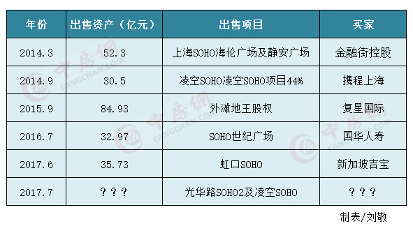 值得关注的是,有业内人士向《证券日报》保守估计了光华路SOHO2和凌空SOHO两个项目的市值,预计总计销售额将超过105亿元。换言之,若上述两个项目在今年成功让,这将意味着从2014年开始,四年内,SOHO中国将通过销售京沪两地办公物业套现超过340亿元。