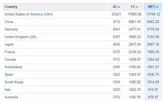 我们再看世界顶级科技杂志《自然》编写的自然指数,统计68种全球影响力最大的科技杂志发表的论文,根据不同权重做了自然指数,下图是2016年2月1日—2017年1月31日的自然指数排名,WFC中国是6462.29,稳居世界第二,已经是日本的两倍以上,当然比美国的15794差距还很大。日本只排在世界第五。